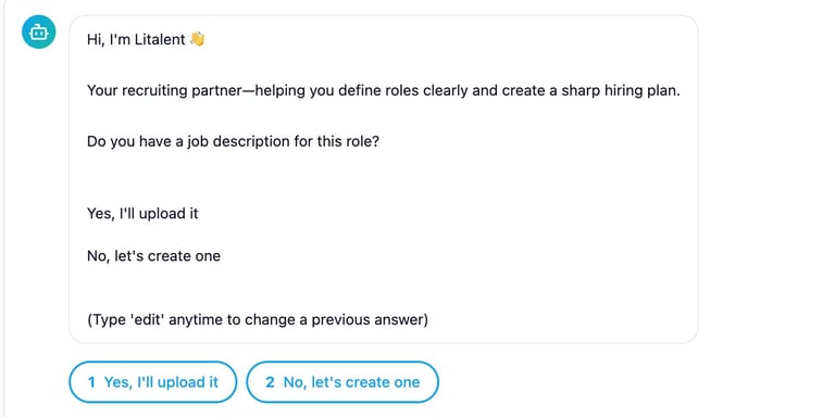 → Tell Litalent about the role by answering dedicated questions (or import from ATS)